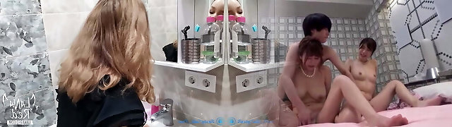 Combined asian college slut covers her big innate tits in oil and gives a slippery knocker job and handjob