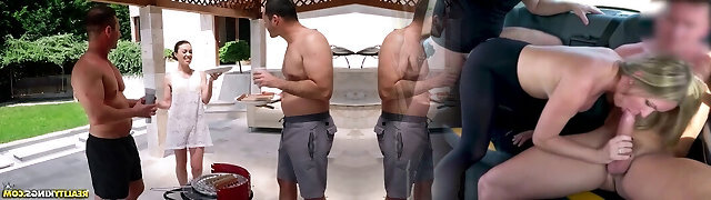 Amateur gangbang with depraved beauties, three guys penetrated them hard