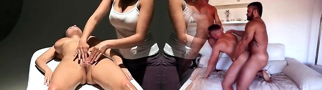Erotic super-hot massage is turned into sensual 3 way with charming babes