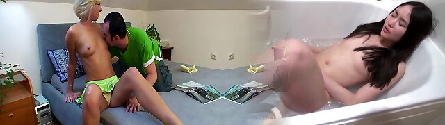 Marvelous babes flash not only tits but asses while fuckin' crazily for orgasm