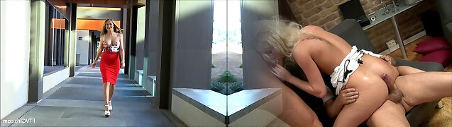 Insatiable Tight Pussy Huge Tits Big Ass Blonde MILF in School Uniform Skirt teases a Big Hard-on Plumber in her Kitchen for his Cum