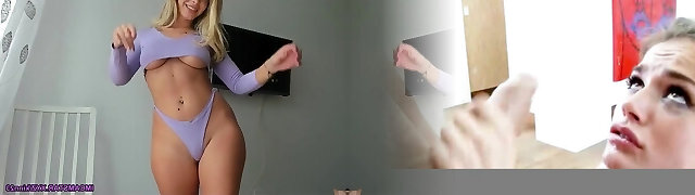 Shy and nervous gf with big tits in a tiny bikini displays in