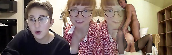 Curly-haired petite camgirl in glasses romps her Boyfriend on stream