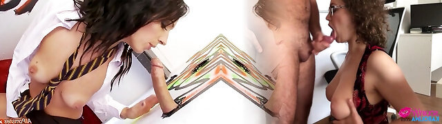 Hot ass diva with shaved pussy passionately providing dick blowjob