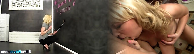 Uncomfortable Blonde Teacher Slut Sucking Ugly Dicks in GloryHole Blowjob After School Fun!