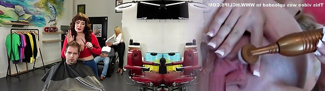 Vivianne DeSilva has fun with a hard bone in the barber store