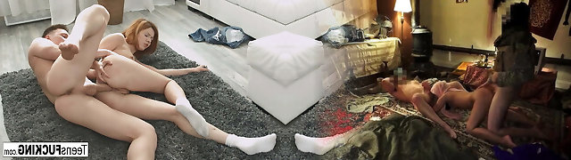 60yo father with big trunk fucks his real 18yo hairy daughter with creampie