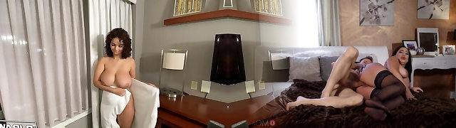 Cougar with huge bra-stuffers to lick and crawl along cock sc 3