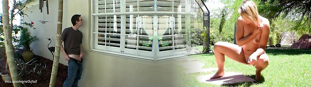 Busty towheaded MILF relieves her stress by pounding with a handsome neighbor