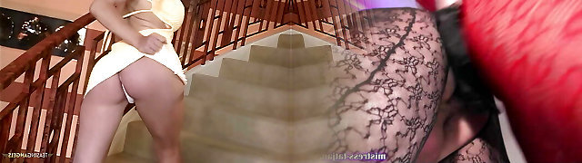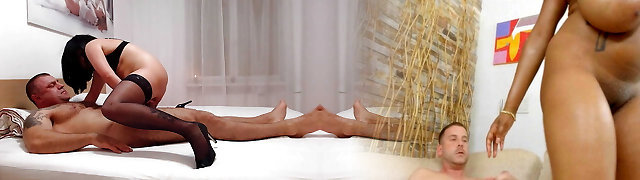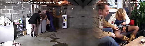 my funny gift for you for Halloween- jokey hardcore fuckfest.. Spectacular succubus in black lingerie and high heels fucks men