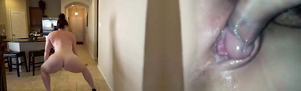 Handsome diva moaning when her pussy gets plumbed in the kitchen