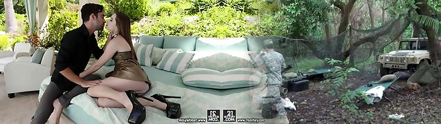 Naughty America Devon Michaels pounding in the couch with her mounds