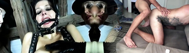Miss Maskerade in full latex catsuit have hard sex fucking enclosed in heavy mask as rubber creature