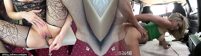 Blonde fucking in spandex stockings