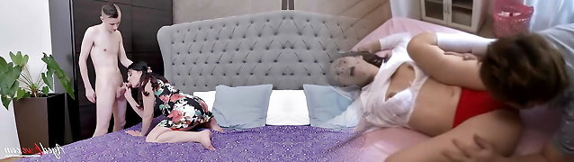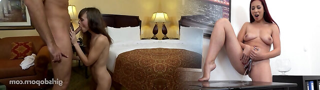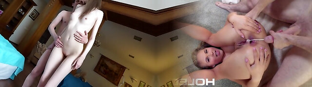 Young schoolgirl and step-dad discover her cousin wanking with her thong and gets anal pounding