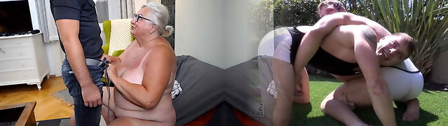 78yr senior Grandmother caught and 3Some DP Fucked by Step-Grandson