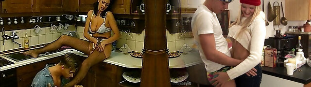 Step mom demonstrates to step son how she is kinky and fuck by bottle, dressed in tights without underwear