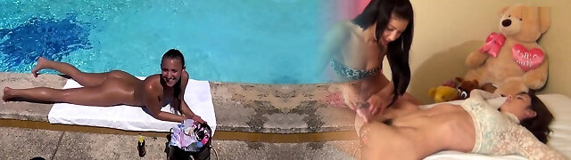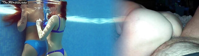Stunning bitches tribbing and fucking after they hook up in the pool