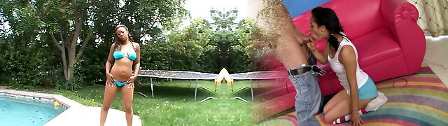 FFM threesome in the pool with steaming honies Brooke Brand and Jenni Lee