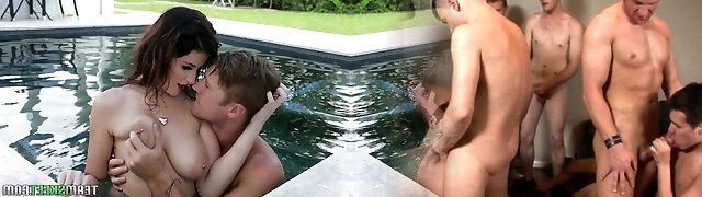 Aften Opal And Kyler Quinn - An Astounding Blowjob And Bang-out In The Pool After A Wild Gangbang Disrobe Game