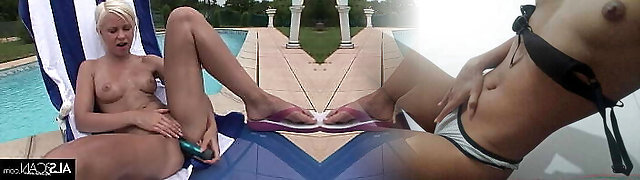 Anna Victoria wails sweetly while finger-banging her pussy on the poolside