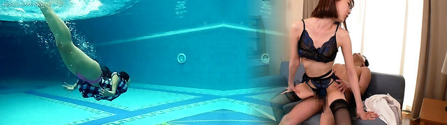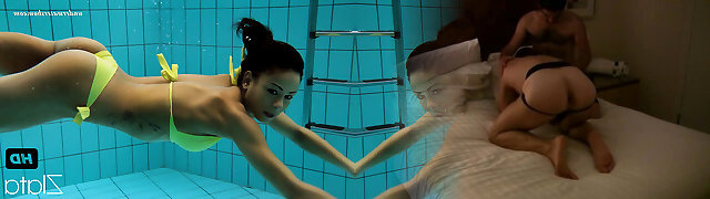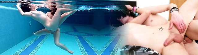 Puny lady Anina Silk publicly fucks with her swimming coach right in the pool.