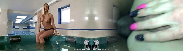 Tiffany blond perfect round booty teen swims underwater and undresses