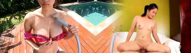 Outdoor dicking by the pool with a super-fucking-hot brown-haired - May Thai