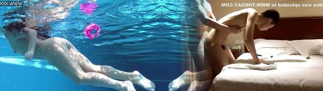 Fun Thai teenager GF pool time and horny sex after back in the apartment