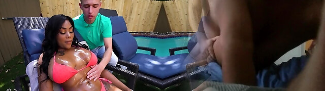 Angel Cruz And Sarah Black - Fucks Bulky In Front Of Her Home Pool