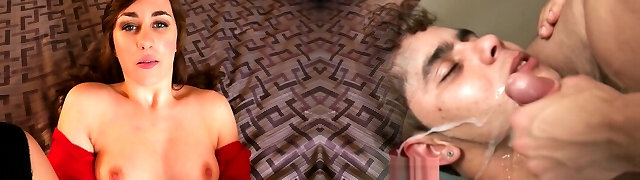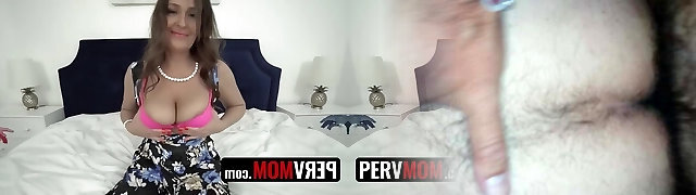 Busty step-mom is giving an amazing blowjob to horny stepson before riding him in POV