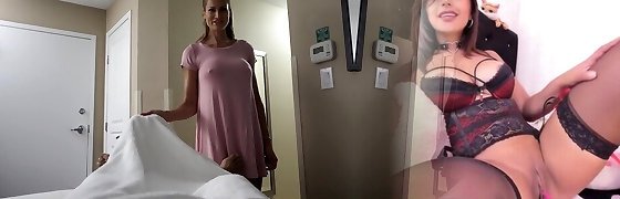 Step Mom caught Step Sonnie with man sausage and helps to cum quick on her pussy while her Husband is not hom