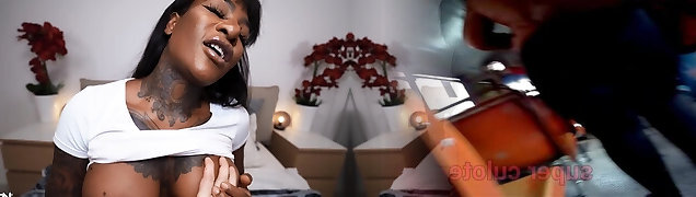 Bouncy butt ebony Nyna rides her white roommate in Closeup POV
