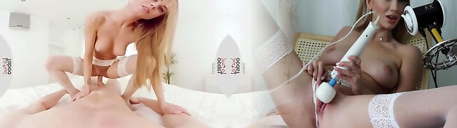 Premium platinum-blonde demonstrates big natural tits and jerks Stepdad's cock in POV