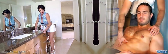 Big boobs Shay sucks and rides that huge trouser snake while cleaning in point of view
