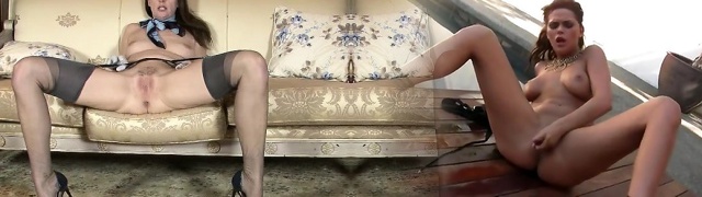 Bodacious brunette with nice tits and firm bum rubs her pussy on camera then fucks