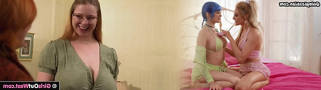 Huge Titted Red-haired And Blonde Lick Each Others Pink Pussy
