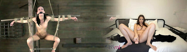 Anorexic brunette whore gets her ruined cunt tickled with vibrator