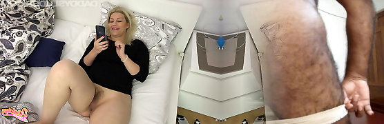 AuntJudysXXX - Hairy MILF Lada Catches Her Stepson Wanking