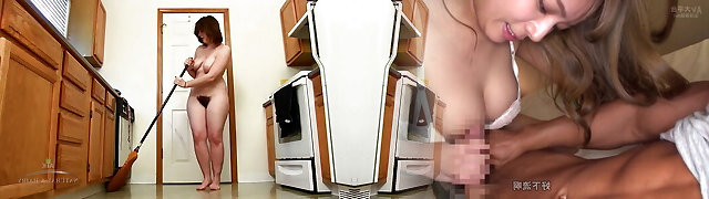 Fur Covered brunette Beryl Aspen strips while she cleans to show off her huge booty