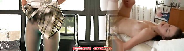 Tease her or him. Jeny Smith measures transparent pantyhose