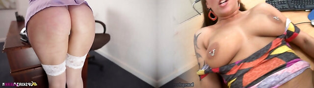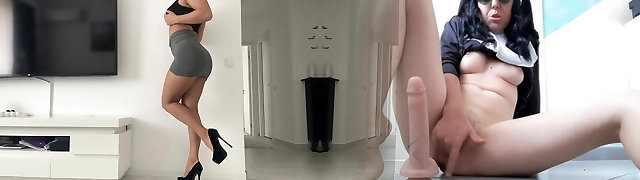 Lusty secretary playing with herself in the office