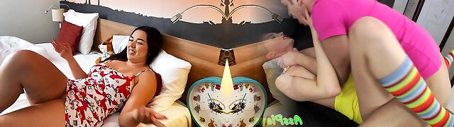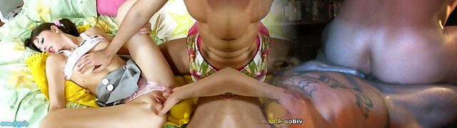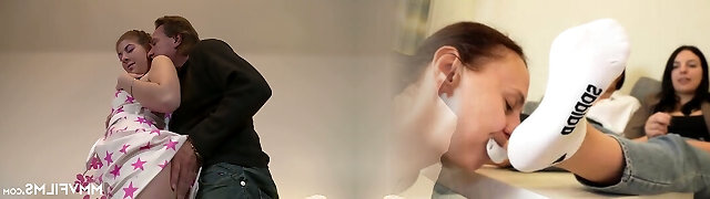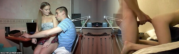 Step step-sister gives a suck off and plumbs her stepbrother in pantyhose so that he does not tell his parents anything
