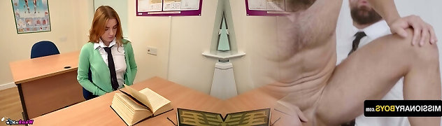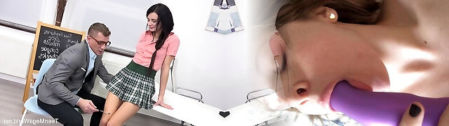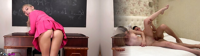 Mischievous nerdy schoolgirl lures her private tutor and finally gets analfucked