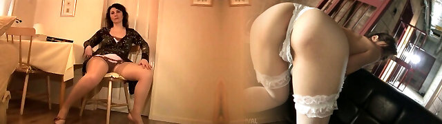 Mature English doll in slip and stockings strips and teases