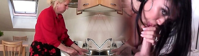 Stepgranny想要一个沉重的萨拉米香肠在她的古典潘尽快