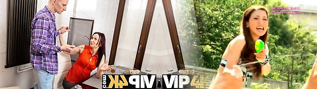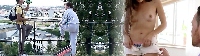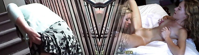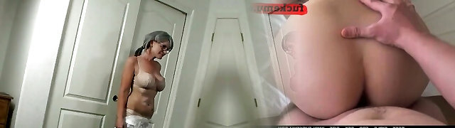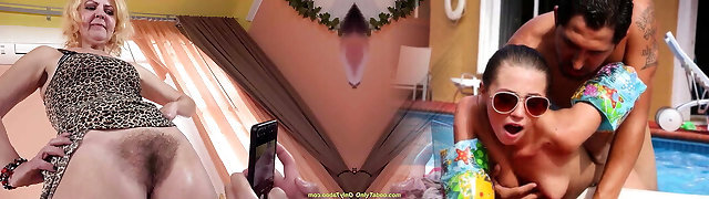 肮脏的青少年在牛仔裤短裤莉莉引诱奶奶的新丈夫