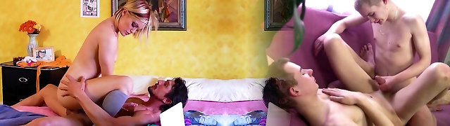 莉莉亲爱的米歇尔可以得到她十几岁的孔砰的一声由两个Boners在一次