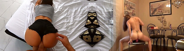 Big boobs Shay sucks and rides that huge trouser snake while cleaning in point of view