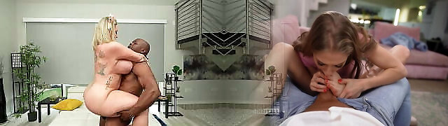 Curious Humungous Tit Babysitter Joins In On Wife Blowing Husband